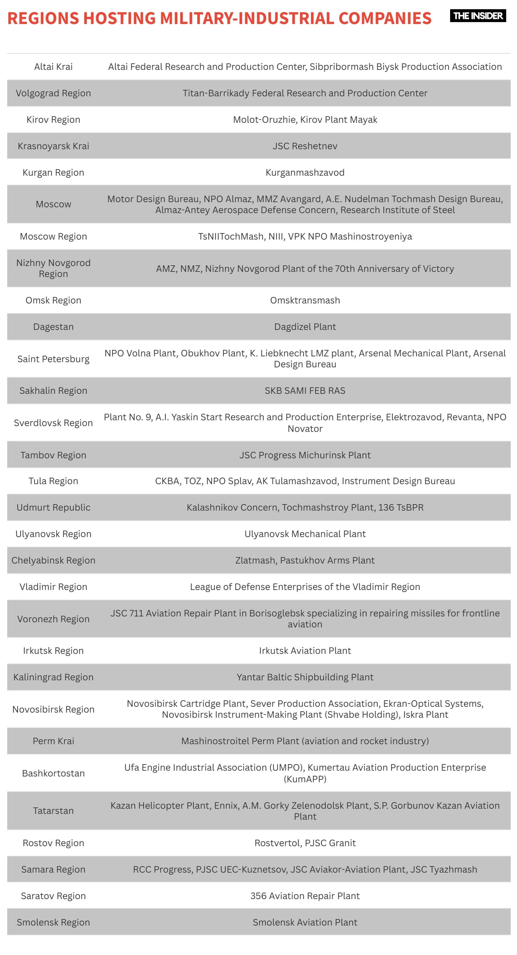 The figures for one-time payments are taken from IStories, while the data on defense industry enterprises come from the Zavody.rf website and several additional sources.