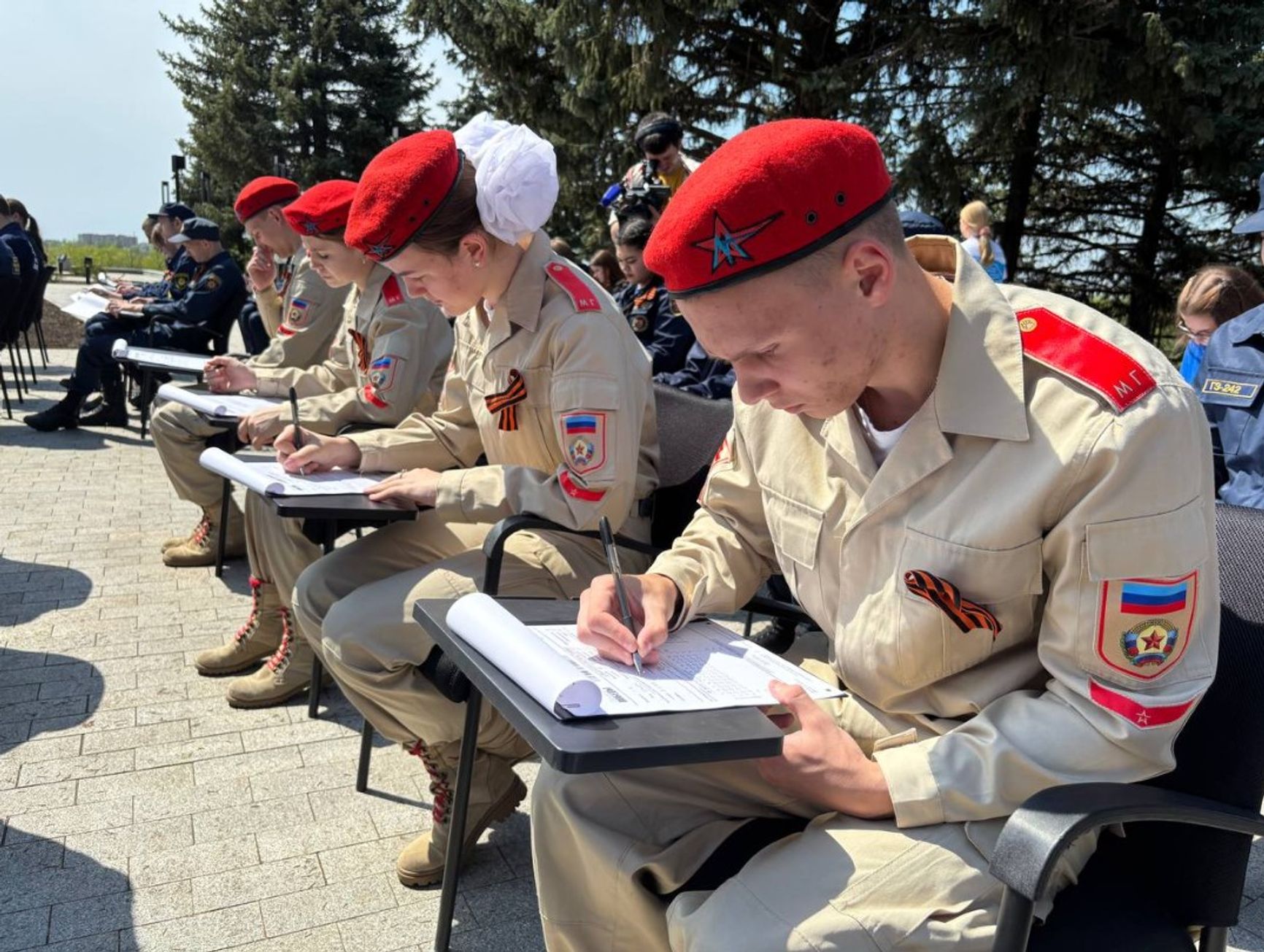 Еще одним поводом «уравнять» две войны стал «Диктант Победы», в котором к заданиям по истории ВОВ, по поручению председателя партии Дмитрия Медведева, добавлены вопросы о событиях «в зоне СВО», «пересекающихся с событиями в ходе ВОВ». Участие в диктанте приняли 18 тысяч детей и взрослых из «исторических регионов»: в Запорожской области — более пяти тысяч, в Херсонской области — почти четыре тысячи, в «ЛНР» и «ДНР» — девять тысяч жителей. Председатель «Народного Совета ЛНР» Денис Мирошниченко заявил, что луганские школьники и студенты видят в диктанте особый смысл: «Мы знаем о подвигах дедов и отцов не только с их слов, нам и самим пришлось столкнуться с фашизмом лицом к лицу!»